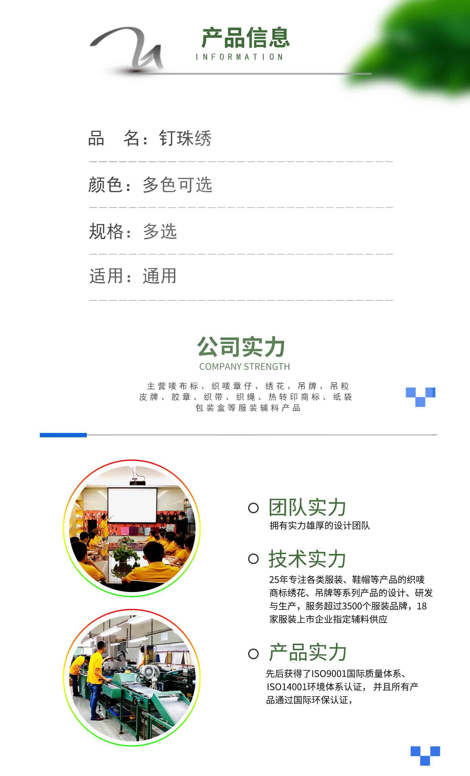 产品工艺:电脑钉珠、电脑刺绣、背胶等支持多种工艺。