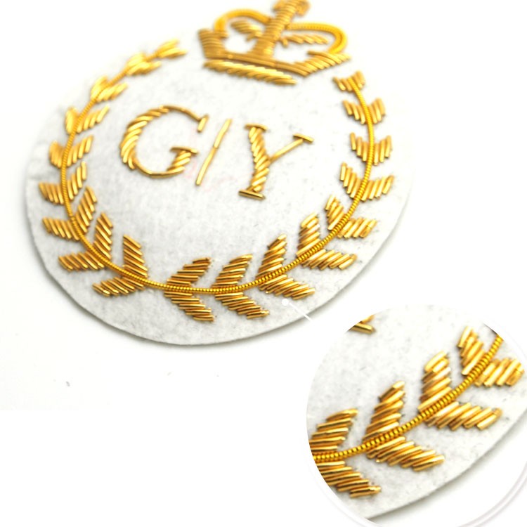 印度丝绣花章,早起源于印度,故又称印度丝徽章、铜丝徽章、弹簧丝徽章、印度绣花章、金属刺绣章等