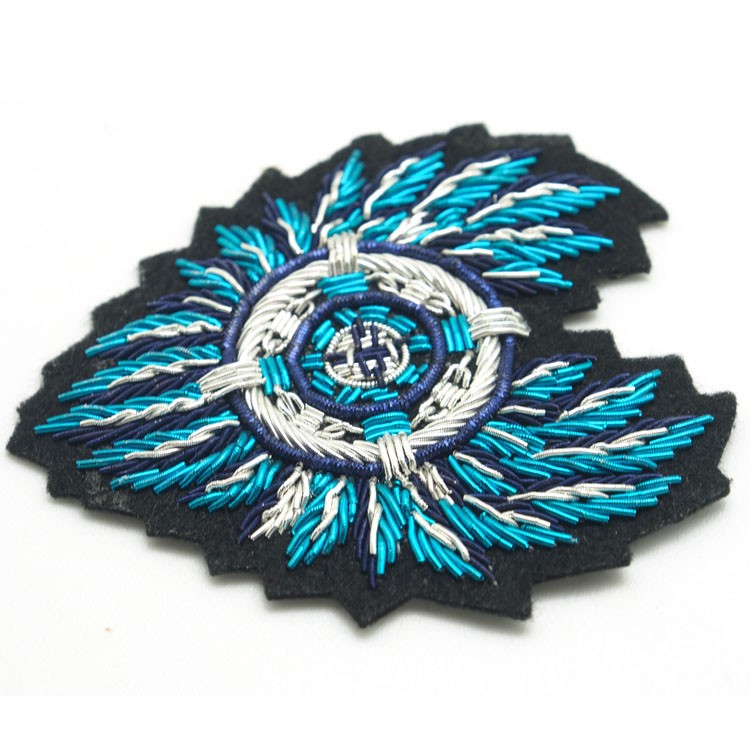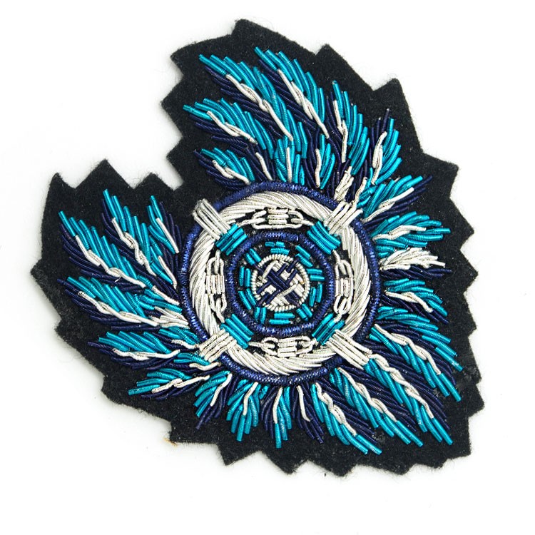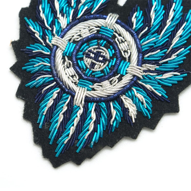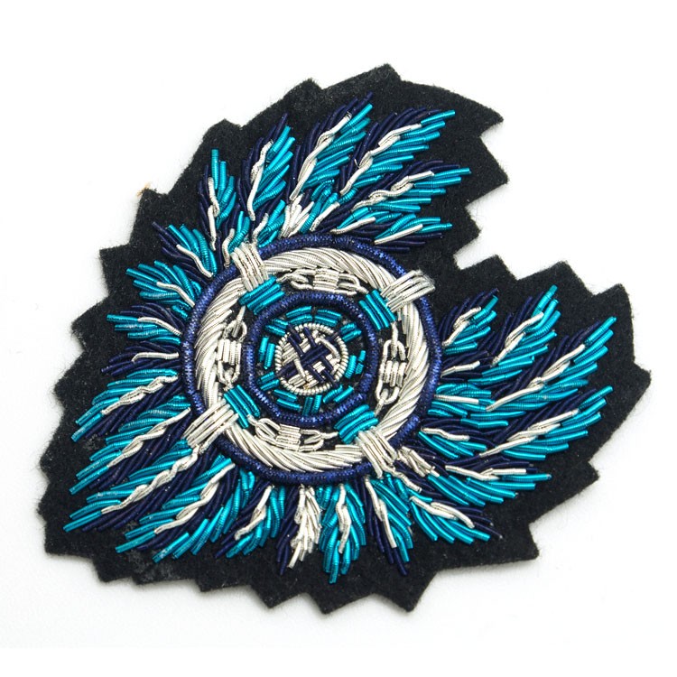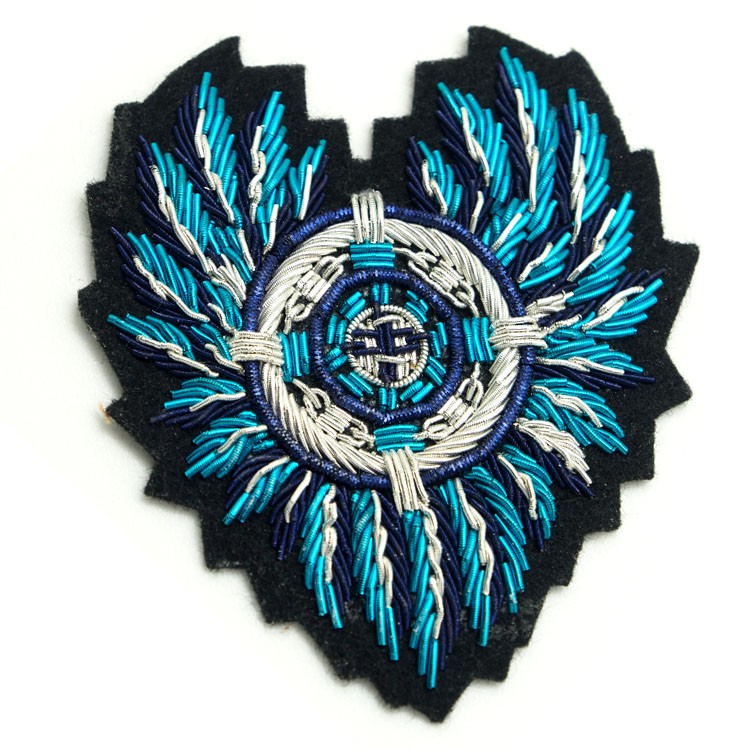 印度丝绣花章,早起源于印度,故又称印度丝徽章、铜丝徽章、弹簧丝徽章、印度绣花章、金属刺绣章等,采用印度特有的金属线为主要材料,并用传统的手工艺绣花,一针一线刺绣而成。其手工精细,令人叹为观止,绣出来的产品高档华丽,层次分明。
