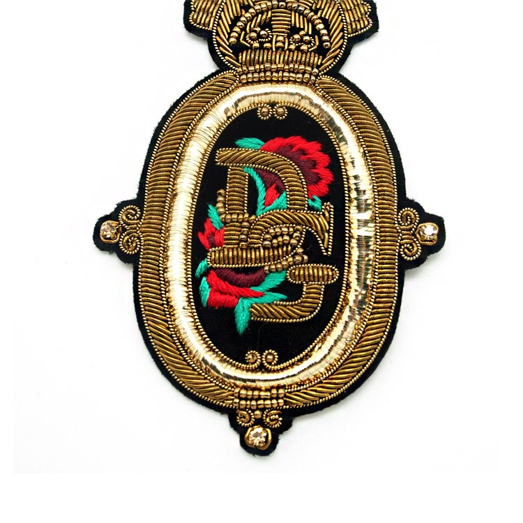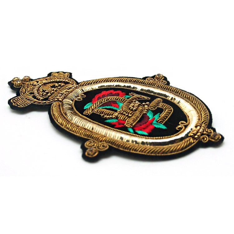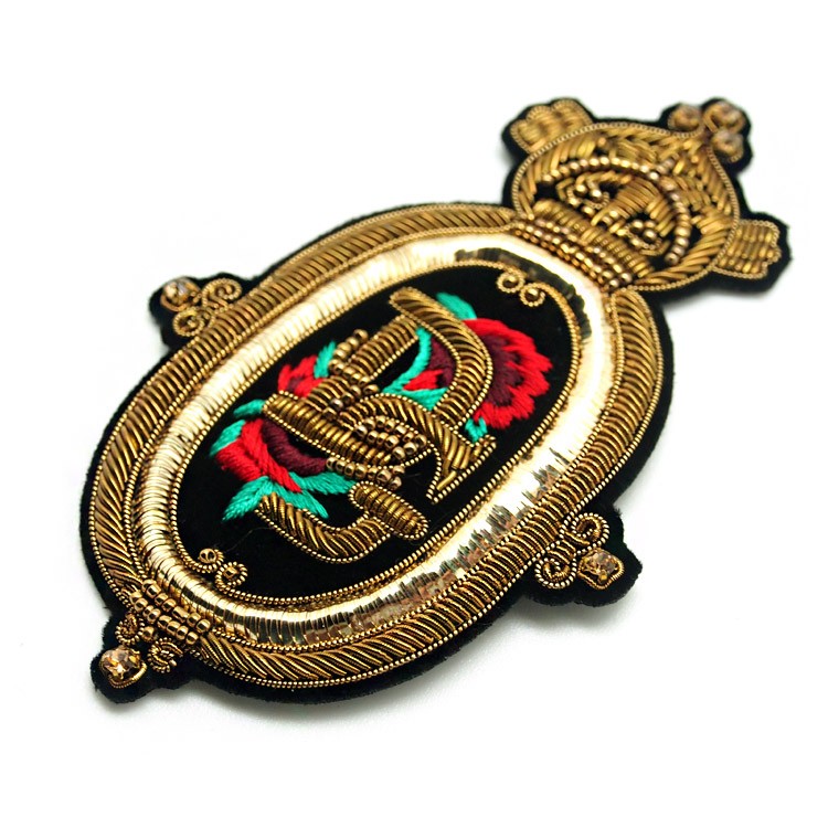 印度丝绣花章,早起源于印度,故又称印度丝徽章、铜丝徽章、弹簧丝徽章、印度绣花章、金属刺绣章等,采用印度特有的金属线为主要材料,并用传统的手工艺绣花,一针一线刺绣而成。其手工精细,令人叹为观止,绣出来的产品高档华丽,层次分明。