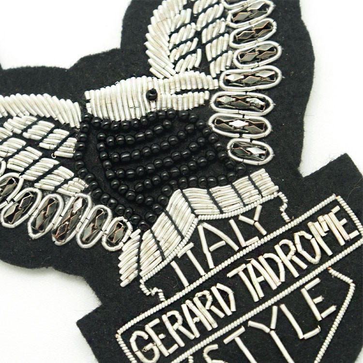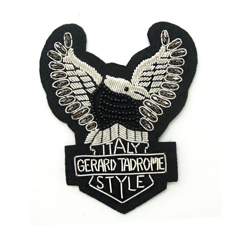 印度丝绣花章,早起源于印度,故又称印度丝徽章、铜丝徽章、弹簧丝徽章、印度绣花章、金属刺绣章等,采用印度特有的金属线为主要材料,并用传统的手工艺绣花,一针一线刺绣而成。其手工精细,令人叹为观止,绣出来的产品高档华丽,层次分明。