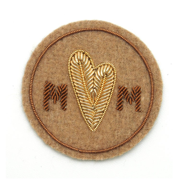印度丝绣花章,早起源于印度,故又称印度丝徽章、铜丝徽章、弹簧丝徽章、印度绣花章、金属刺绣章等,采用印度特有的金属线为主要材料,并用传统的手工艺绣花,一针一线刺绣而成。其手工精细,令人叹为观止,绣出来的产品高档华丽,层次分明。